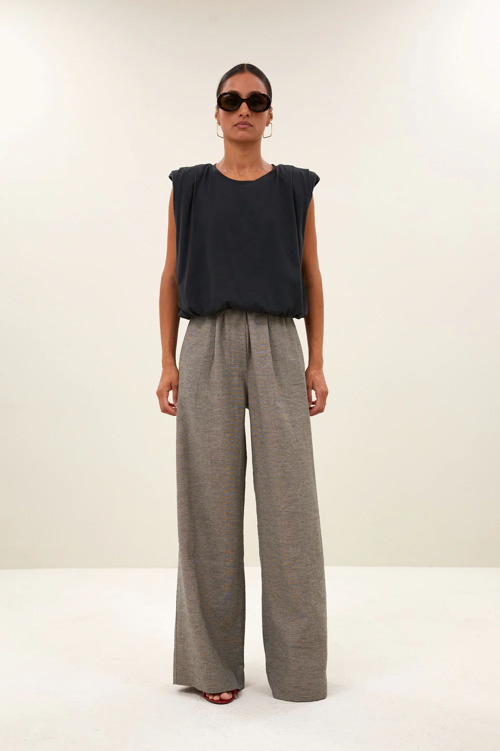 Le pantalon Benji combinent une coupe décontractée avec une taille haute pour un confort optimal. La coupe ample offre un look détendu, parfait pour tous les jours. Avec des poches latérales pratiques et une longueur de pantalon élégante et longue, ce pantalon est un ajout polyvalent à votre garde-robe. Idéal pour ceux qui veulent allier confort et style.