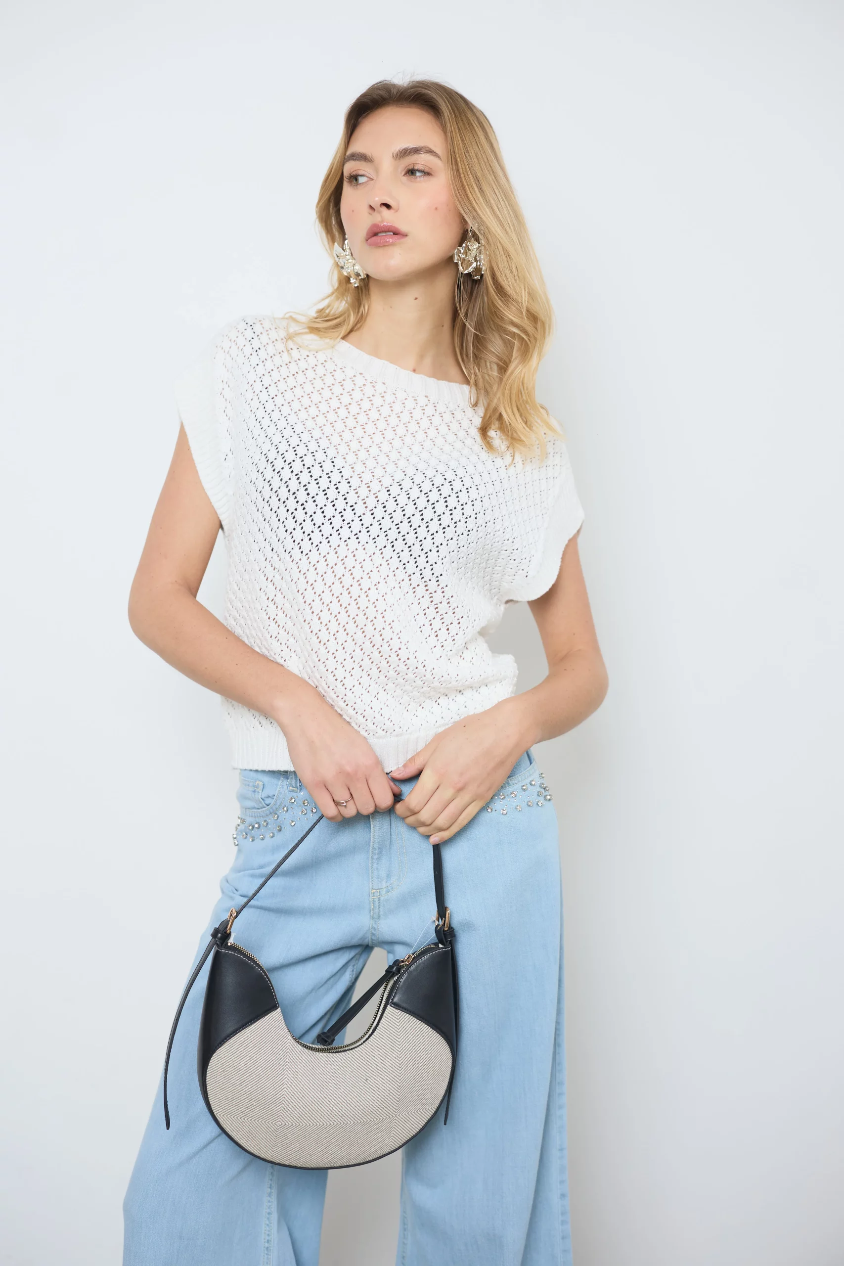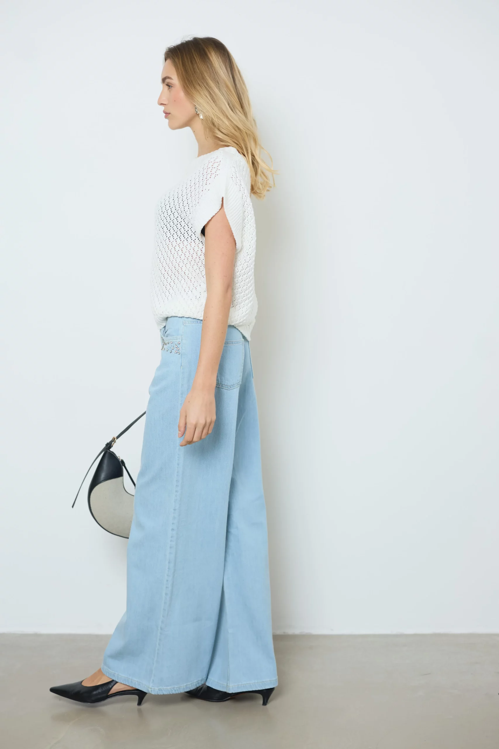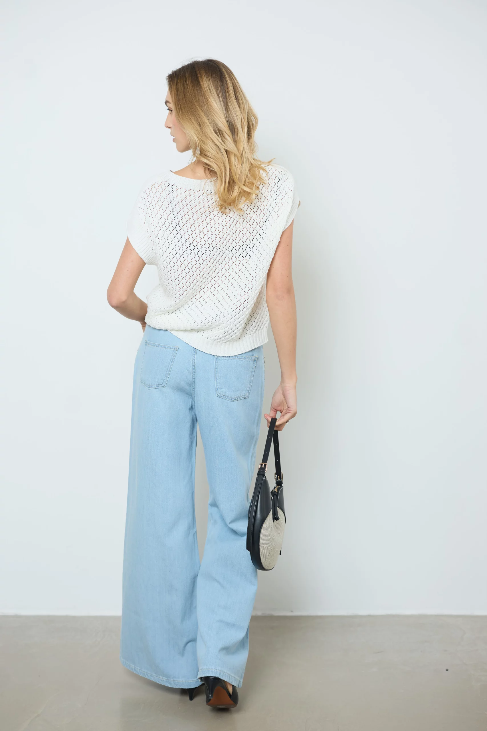 Apportez légèreté et style avec le pull Lena en coton sans manches. Ce joli tricot laisse deviner la peau pour un look estival frais et élégant