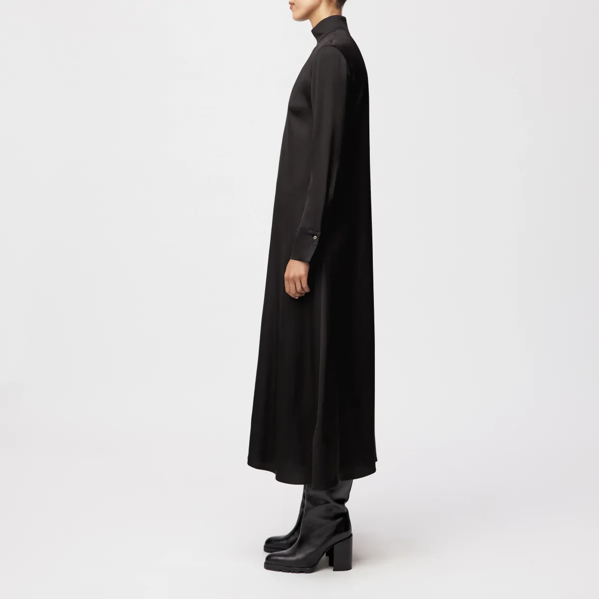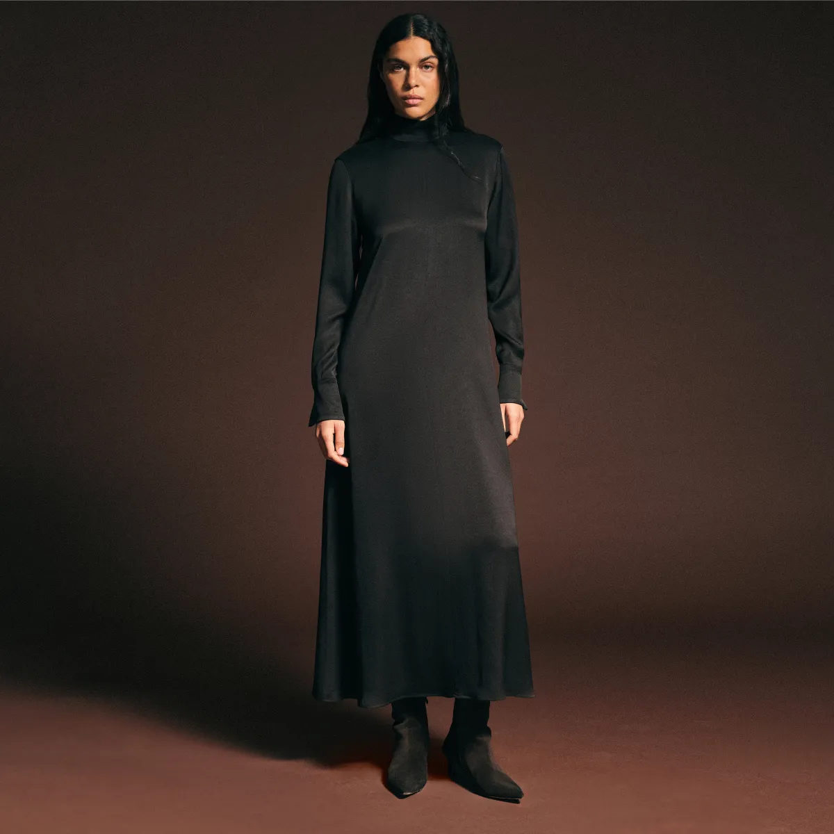 NAINEN est une robe longue à col montant. Elle se caractérise par son élégance simple, sa longueur, sa coupe qui épouse la silhouette et son col montant. Ce type de robe convient aussi bien pour les occasions formelles que pour les occasions casual chic. Confectionnée dans un satin fluide de grande qualité.